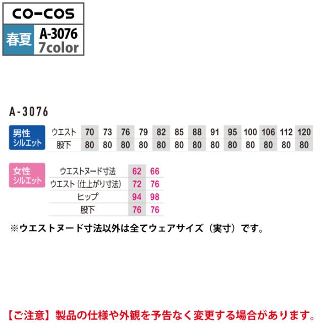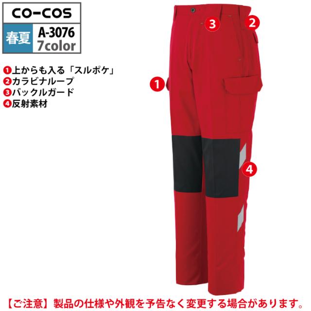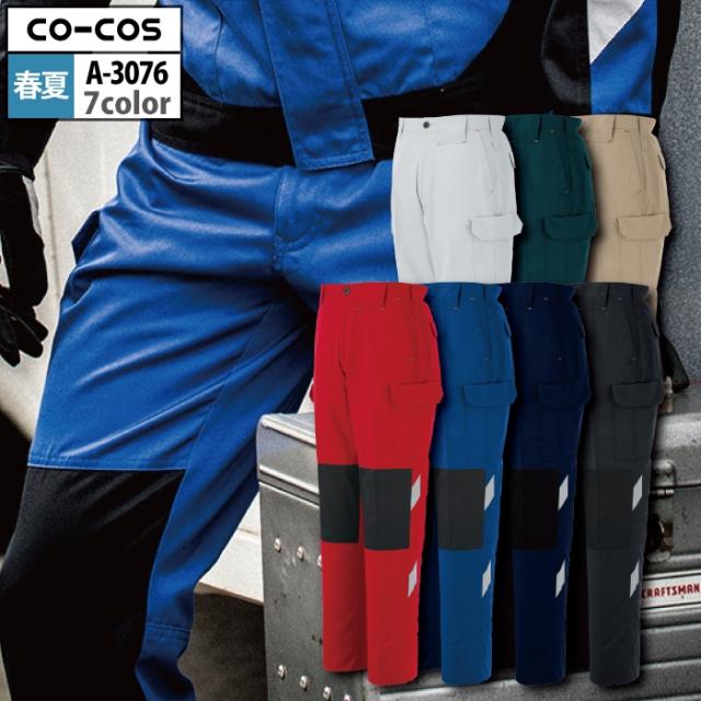 コーコス 作業服 春夏用 A-3076 ノータックカーゴパンツ(配色) 88-106