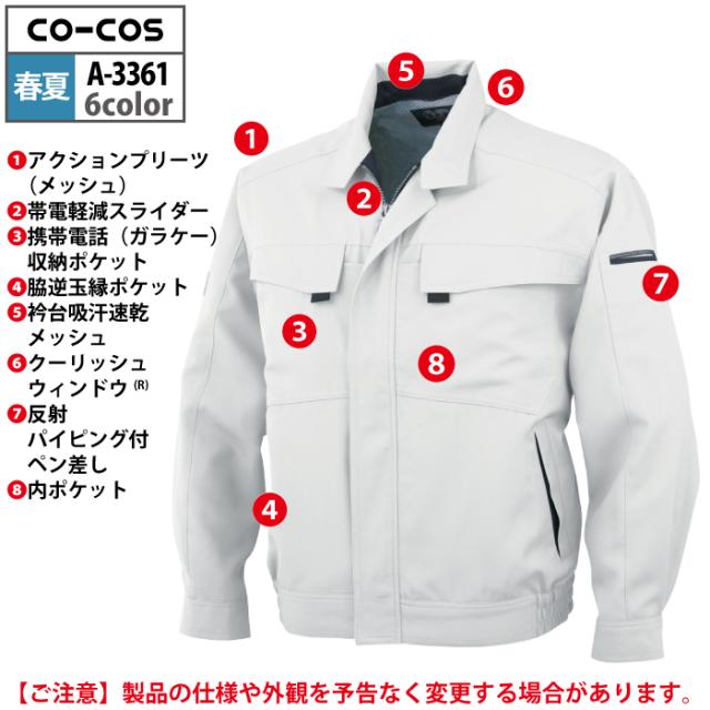 コーコス 作業服 春夏用 A-3361 エコ製品制電長袖ブルゾン EL