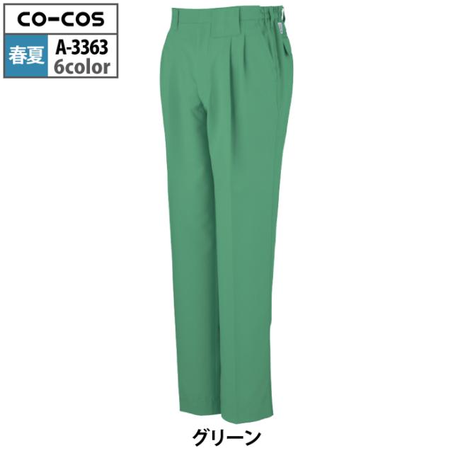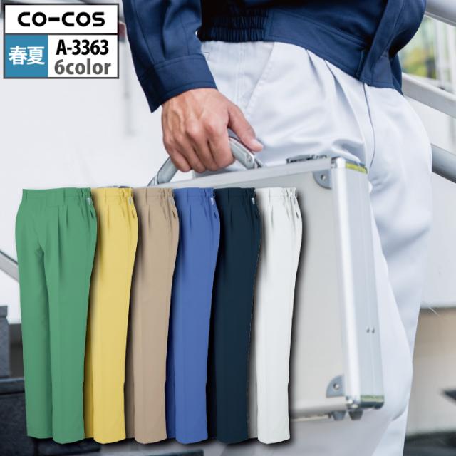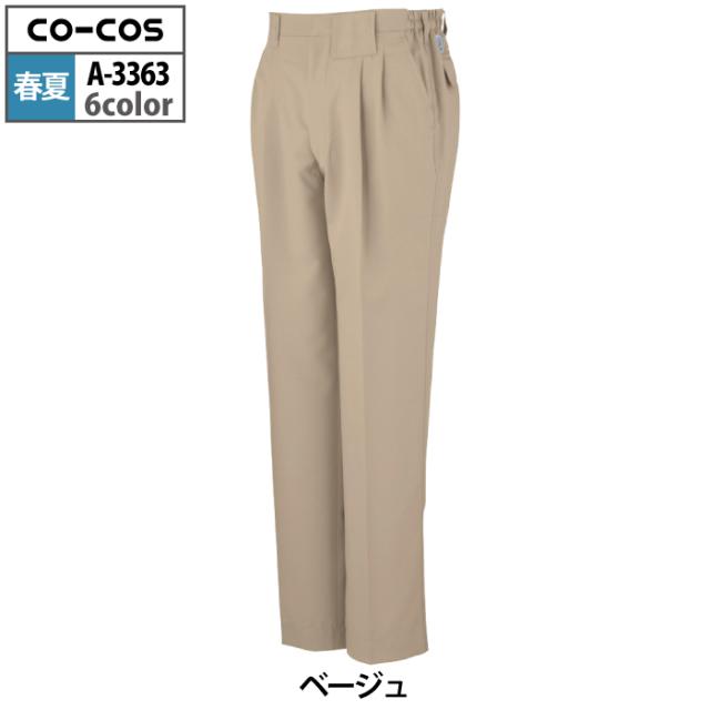 コーコス 作業服 春夏用 A-3363 エコ製品制電ツータックスラックス(脇シャーリング) S-LL