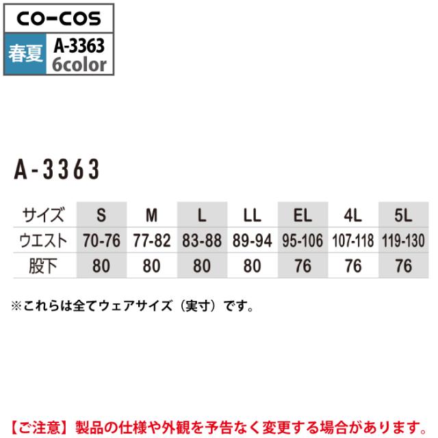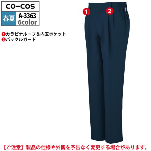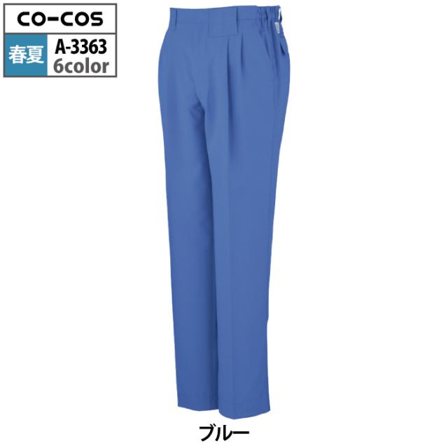 コーコス 作業服 春夏用 A-3363 エコ製品制電ツータックスラックス(脇シャーリング) EL