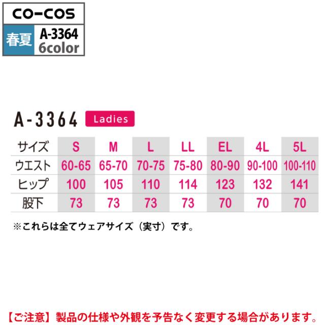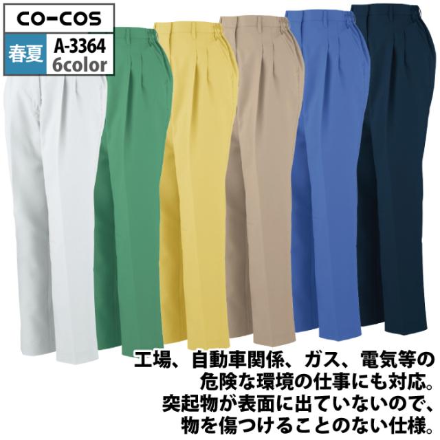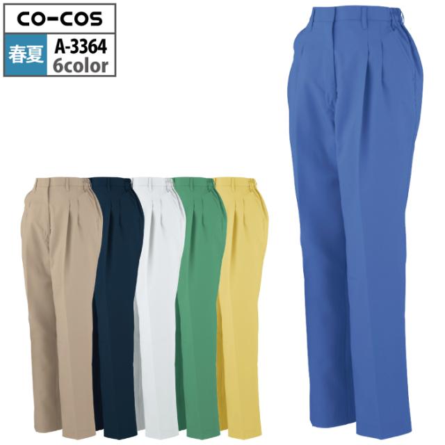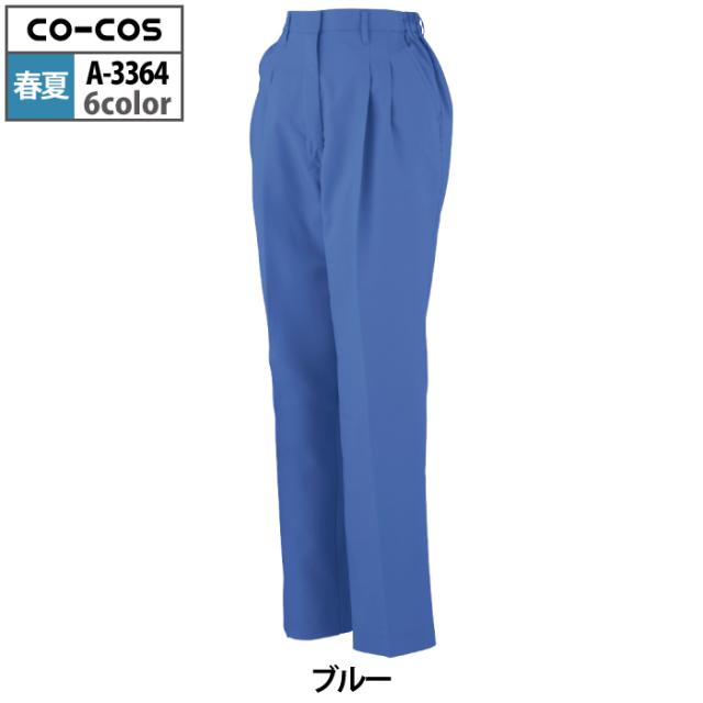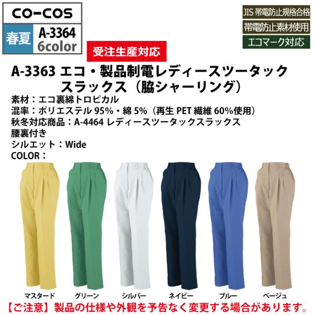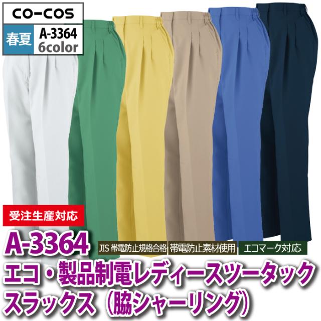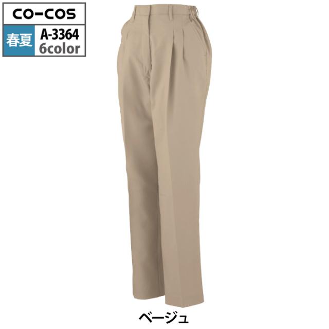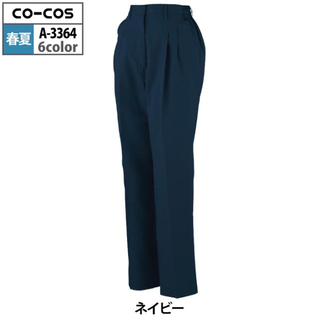 コーコス 作業服 春夏用 A-3364 エコ製品制電レディースツータックスラックス(脇シャーリング) S-LL