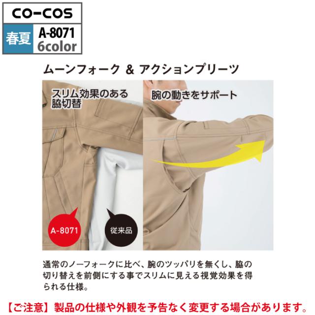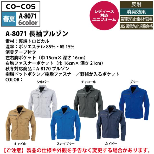 コーコス 作業服 春夏用 A-8071 長袖ブルゾン 3L
