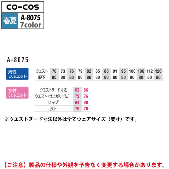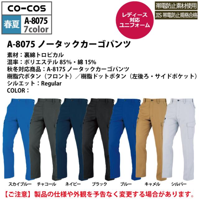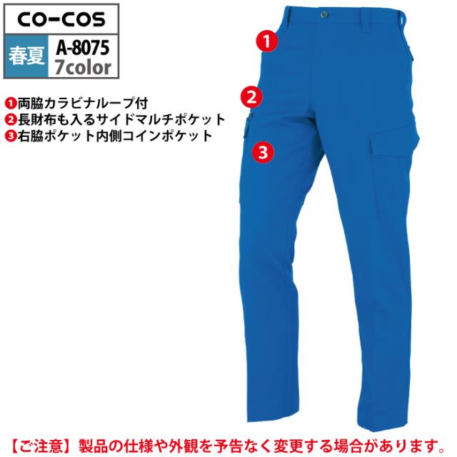 コーコス 作業服 春夏用 A-8075 ノータックカーゴパンツ 112-120