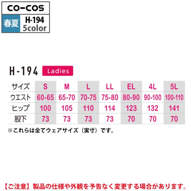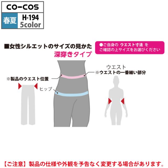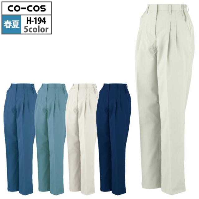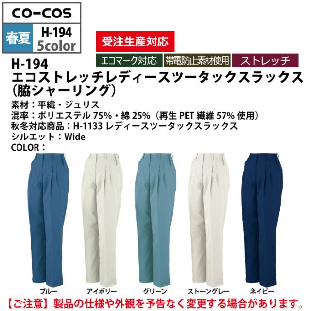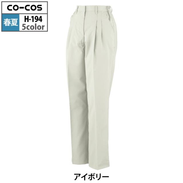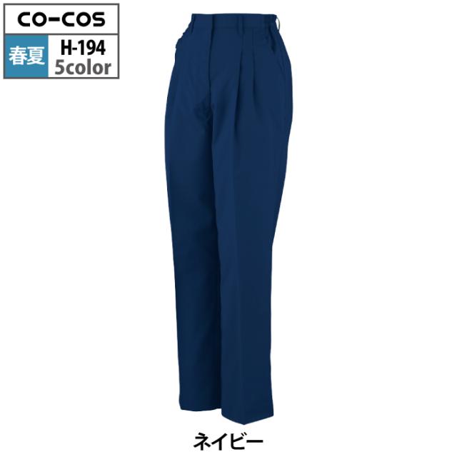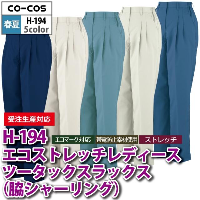 コーコス 作業服 春夏用 H-194 エコストレッチレディースツータックスラックス(脇シャーリング) S-LL