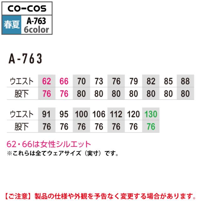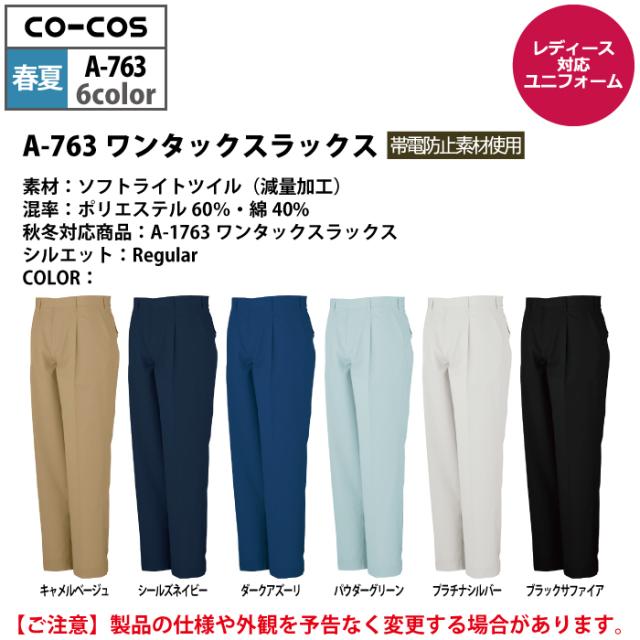 コーコス 作業服 春夏用 A-763 ワンタックスラックス 62-85