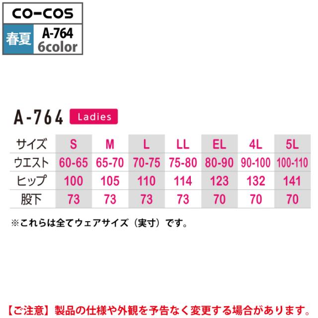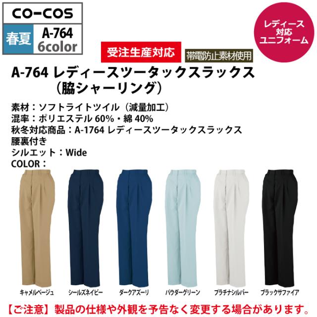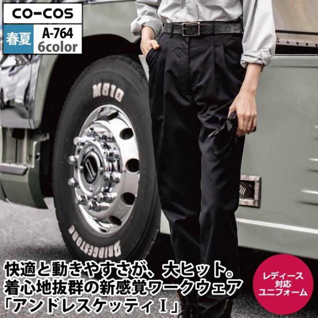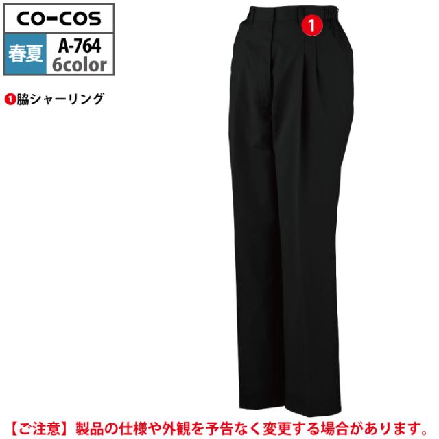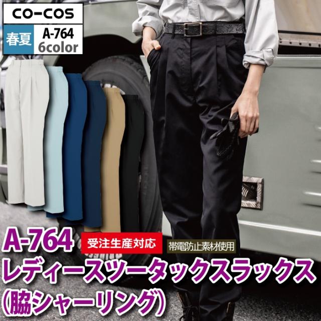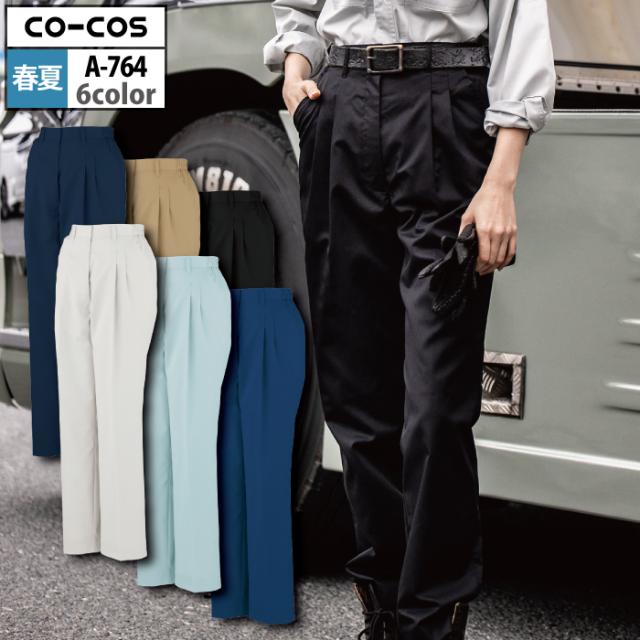 コーコス 作業服 春夏用 A-764 レディースツータックスラックス(脇シャーリング) S-LL