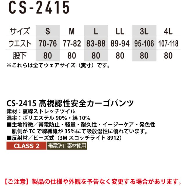 警備服・防犯商品 秋冬用 コーコス CS-2415 高視認性安全カーゴパンツ 4L