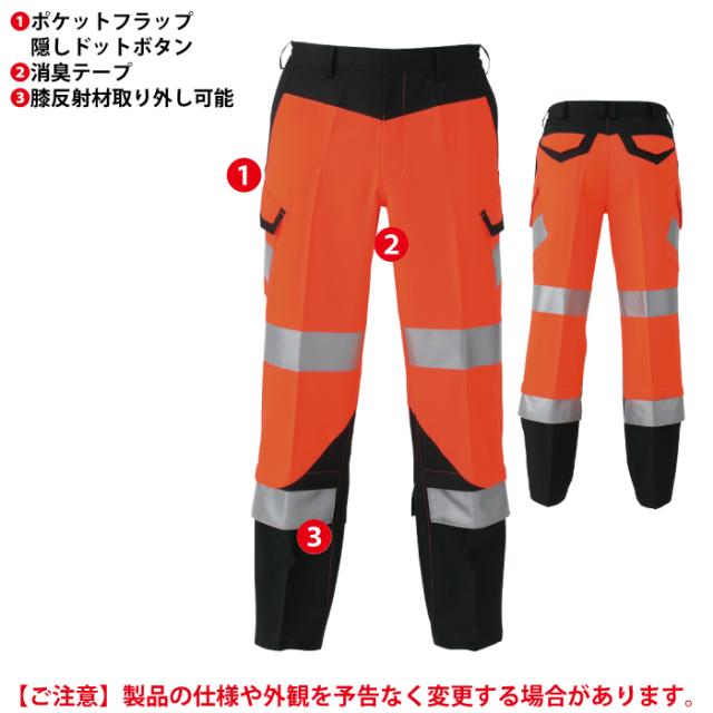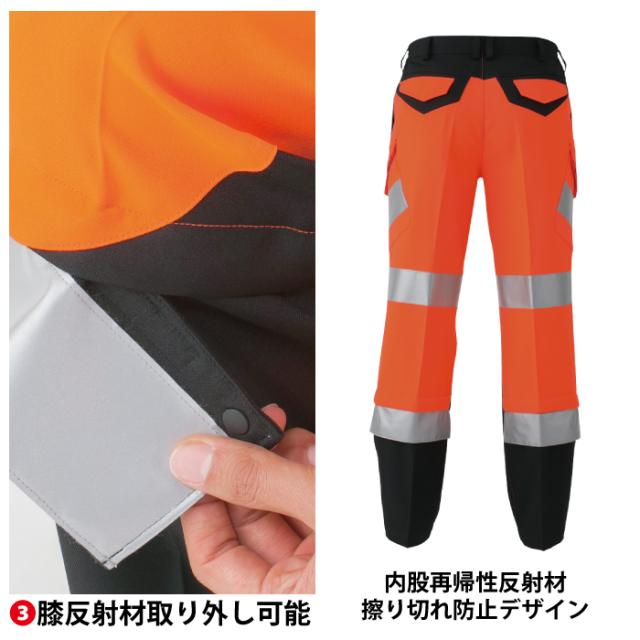 ◇JIS適合証明書 ポケットフラップ隠しドットボタン 膝反射材取り外し可能 内股再帰性反射材擦り切れ防止デザイン 帯電防止 樹脂ドットボタン