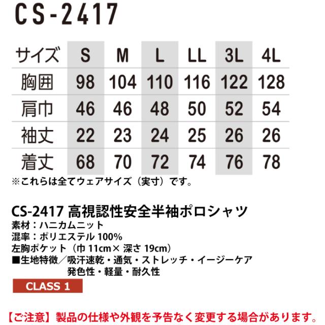 【CS-2417 高視認性安全半袖ポロシャツ】