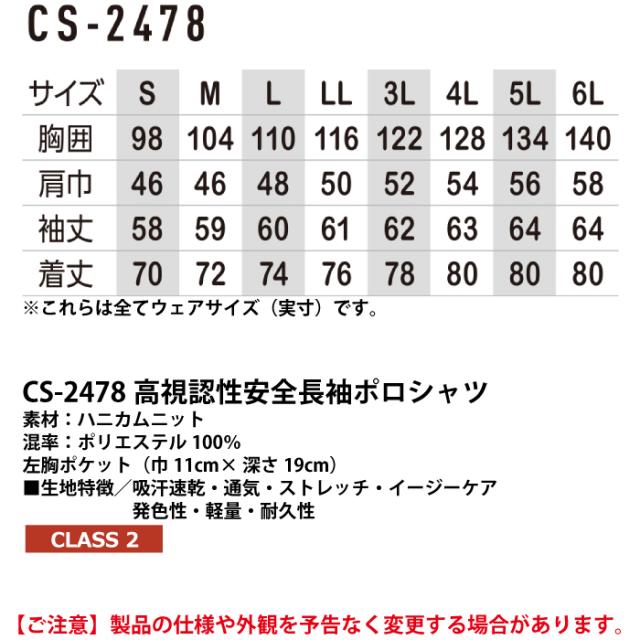 【CS-2478 高視認性安全長袖ポロシャツ】