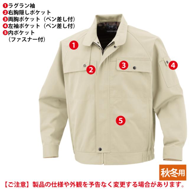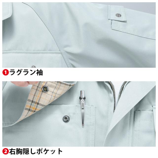 ◇エコマーク対応 帯電防止素材使用 ラグラン袖 右胸隠しポケット 両胸ポケット(ペン差し付) 左袖ポケット 内ポケット