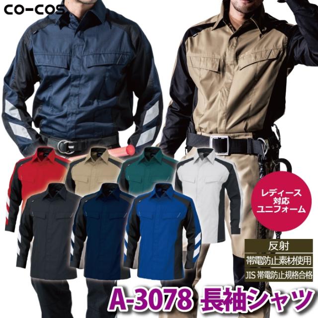 コーコス 作業服 秋冬用 A-3078 長袖シャツ SS-LL