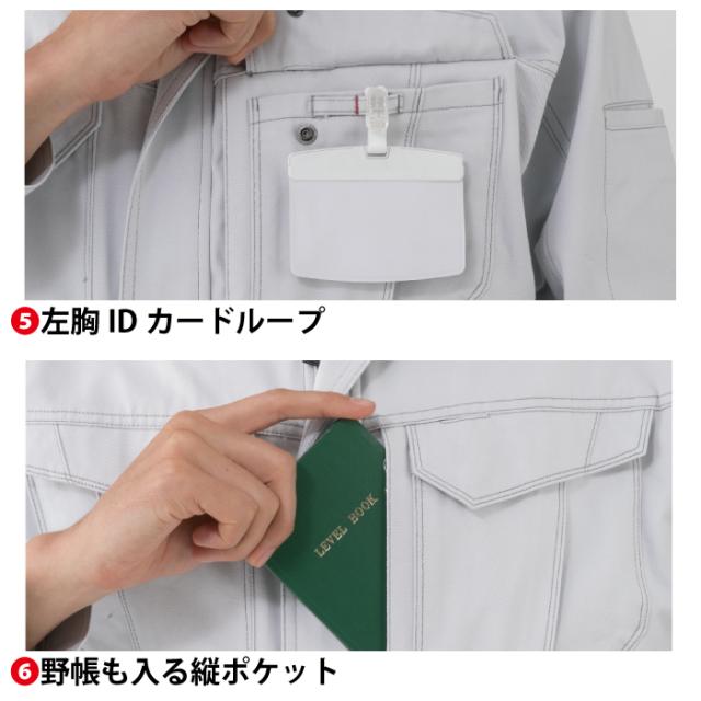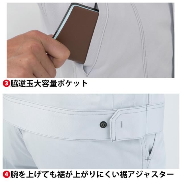 ◇ノーフォーク 両袖マルチポケット 脇逆玉大容量ポケット 腕を上げても裾が上がらない裾アジャスター 脇消臭テープ付 立体カット 野帳も入る縦ポケット 左胸IDカードループ 男女対応