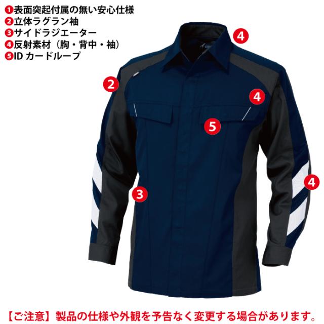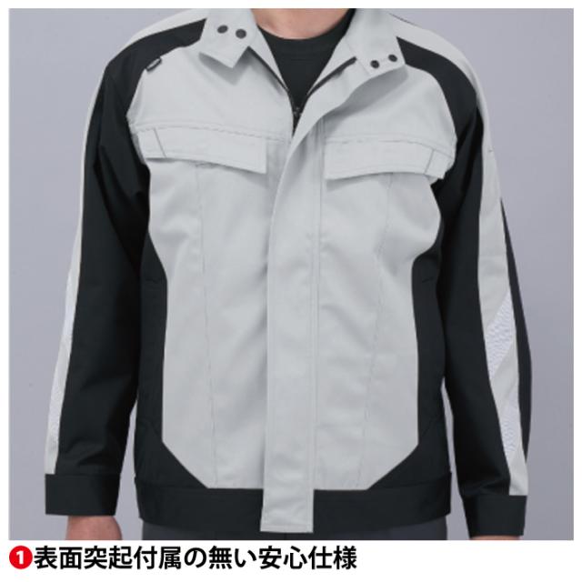 ◇JIS帯電防止規格合格 帯電防止素材使用 立体ラグラン袖 表面突起付属の無い安心仕様 サイドラジエーター 反射素材(胸・背中) IDカードループ