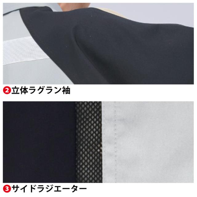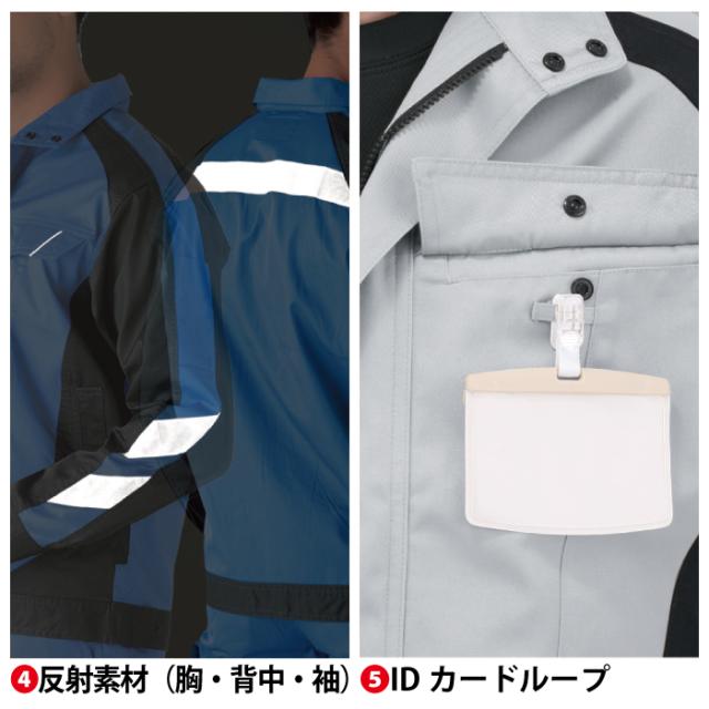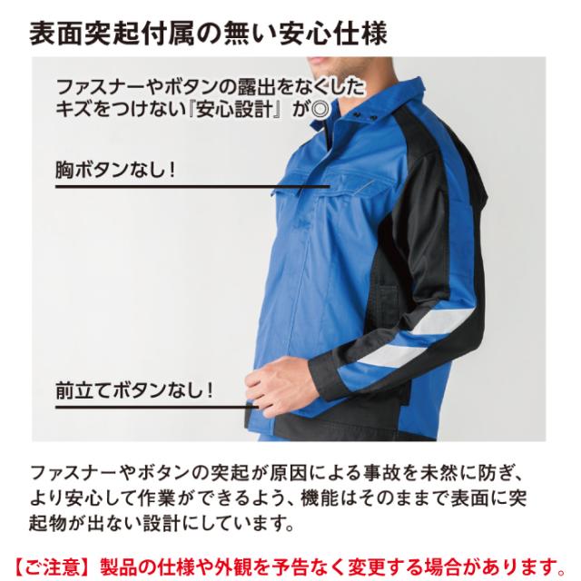 ◇JIS帯電防止規格合格 帯電防止素材使用 立体ラグラン袖 表面突起付属の無い安心仕様 サイドラジエーター 反射素材(胸・背中) IDカードループ