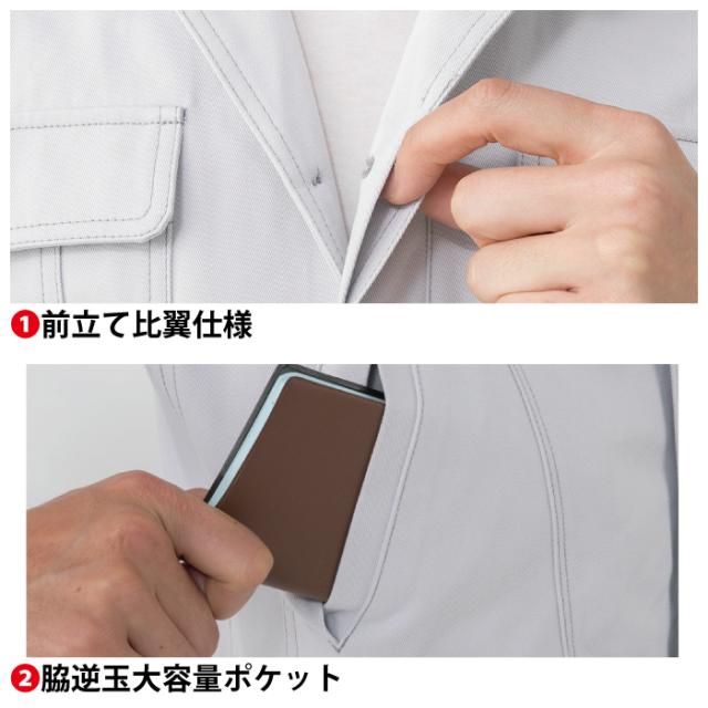 ◇前立て比翼仕様 脇逆玉大容量ポケット 脇消臭テープ付 立体カット 男女対応