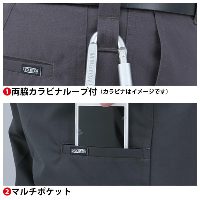 ◇JIS帯電防止規格合格 帯電防止素材使用 両脇カラビナループ付 マルチポケット バックルガード 樹脂穴ボタン
