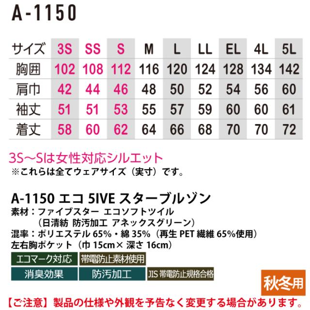 コーコス 作業服 秋冬用 A-1150 エコ5IVEスターブルゾン EL