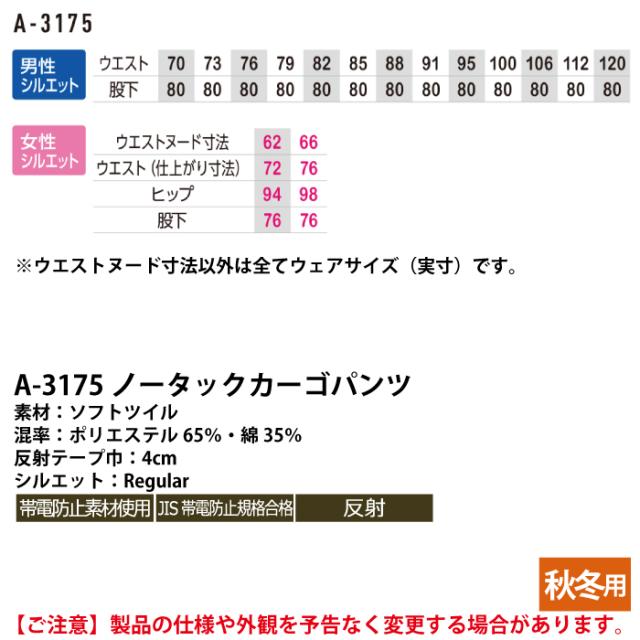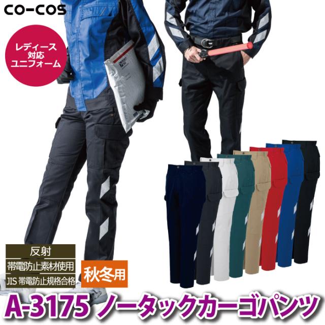 コーコス 作業服 秋冬用 A-3175 ノータックカーゴパンツ 62-85