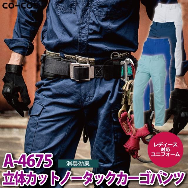 コーコス 作業服 秋冬用 A-4675 立体カットノータックカーゴパンツ 112-120
