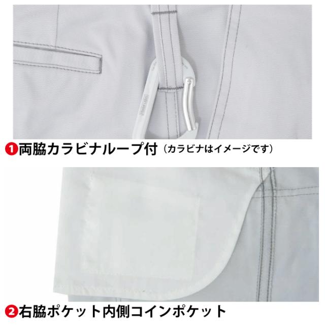 ◇両脇カラビナループ付 右脇ポケット内側コインポケット 立体カット バックルガード