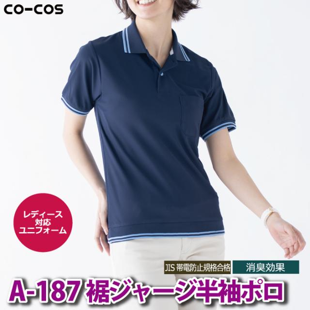 コーコス 作業服 春夏用 A-187 裾ジャージ半袖ポロ 4L-5L