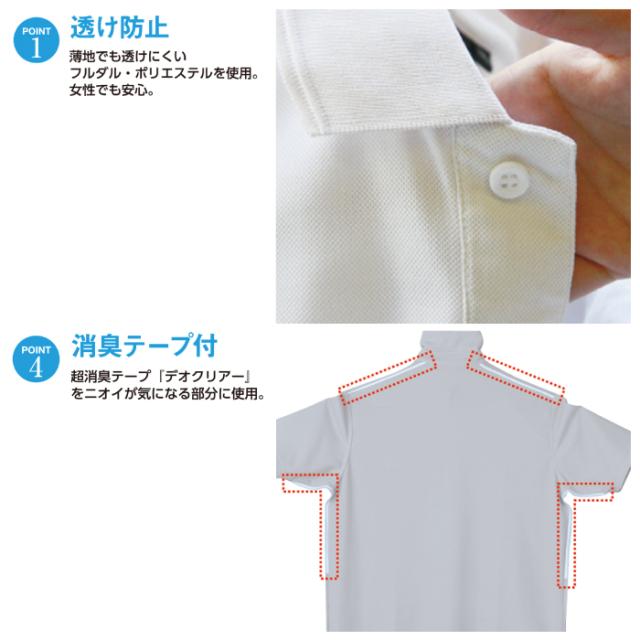 ◇透け防止 JIS帯電防止企画T8118適合 吸汗速乾 消臭効果 左胸ペン差しポケット付 UVカット 帯電防止素材使用 消臭効果 裾スリット 衿配色 ジャストフィットシルエット カフスボタン
