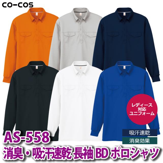 【AS-558 消臭吸汗速乾長袖BDポロシャツ】