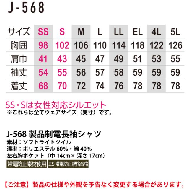 コーコス 作業服 春夏用 J-568 製品制電長袖シャツ 3L