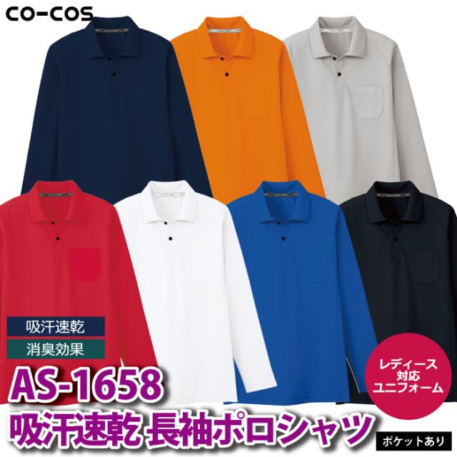 コーコス 作業服 春夏用 AS-1658 吸汗速乾長袖ポロシャツポケットあり SS-LL
