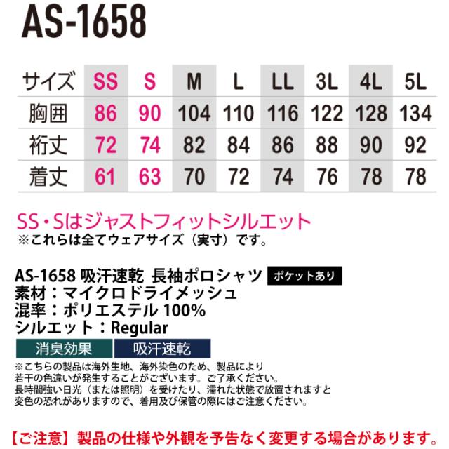 AS-1648 吸汗速乾長袖ポロシャツ