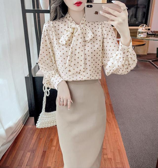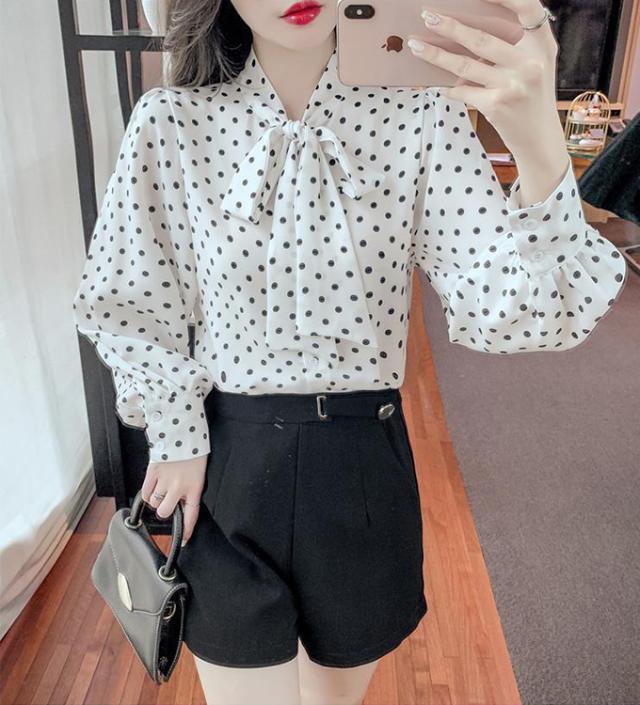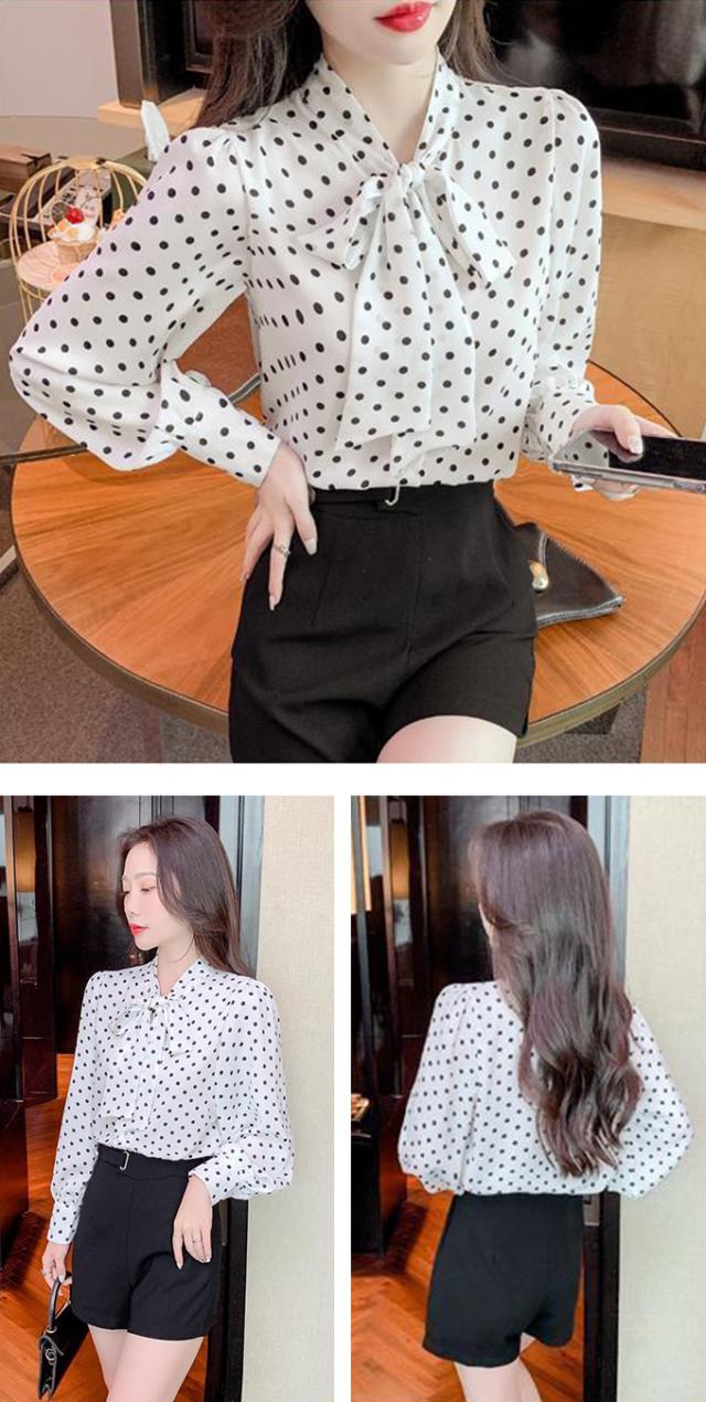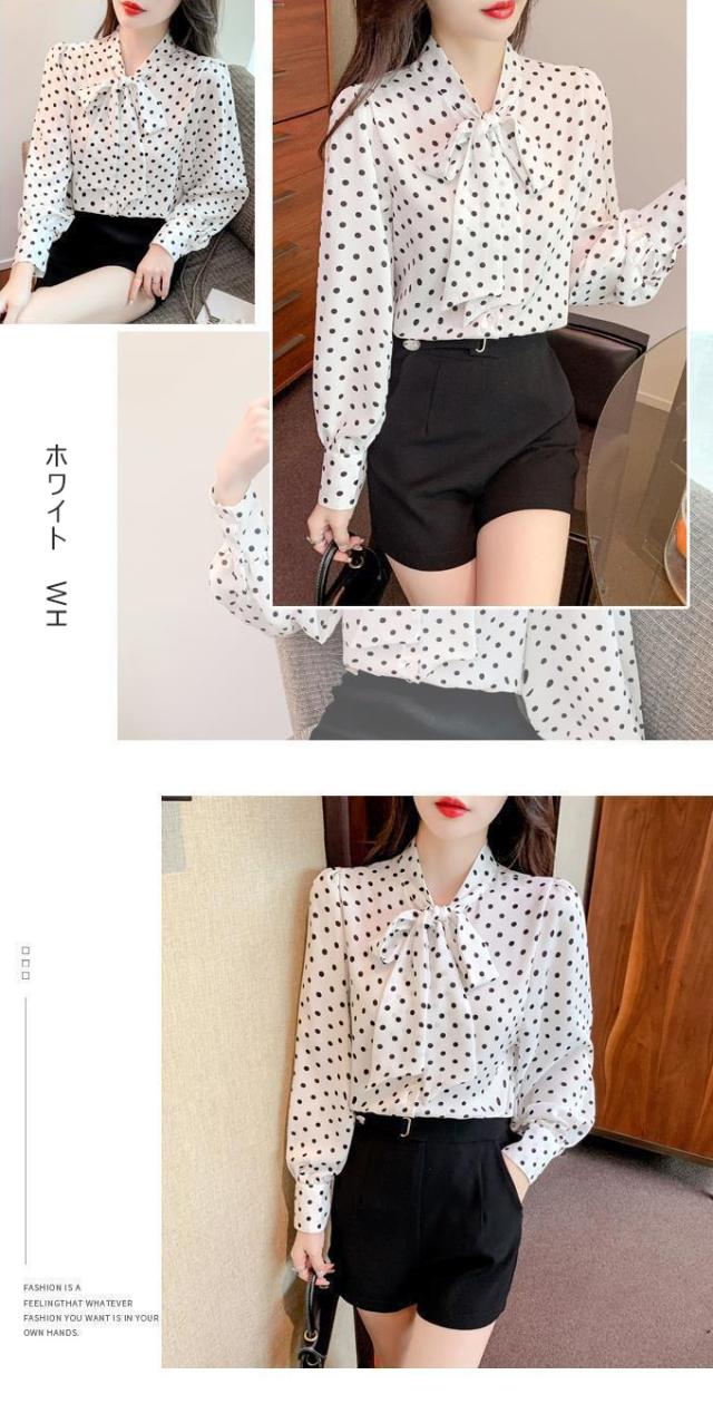 ドット柄で可愛いさ満点のリボンボウタイブラウス