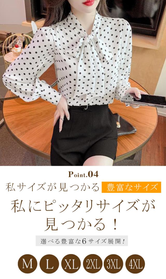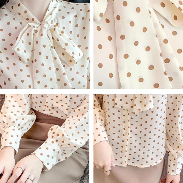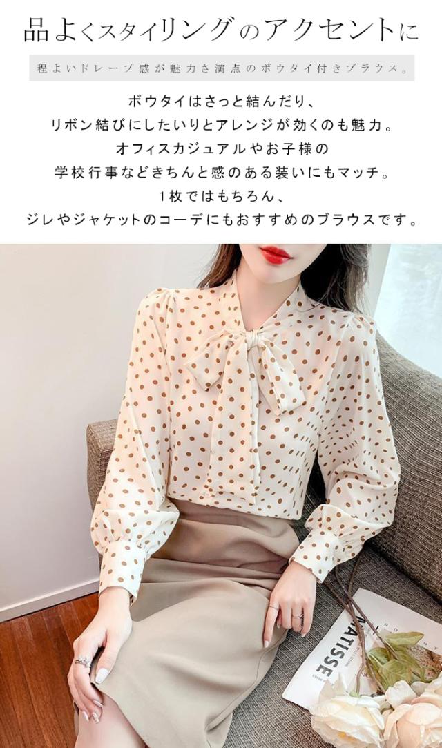 ドットブラウス 水玉 シフォンブラウス リボンボウタイブラウス ブラウスシャツ 長袖 大人 レディース ママ 母 OL 入園式 入学式 卒業式