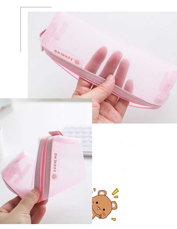 全7色 ペンケース クリア ポーチ 大容量 小物入れ 透明 メッシュ 筆箱 無地 入学祝い 小学生 中学生 文房具 筆入れ 小物入れ きれいめ レディース メンズ
