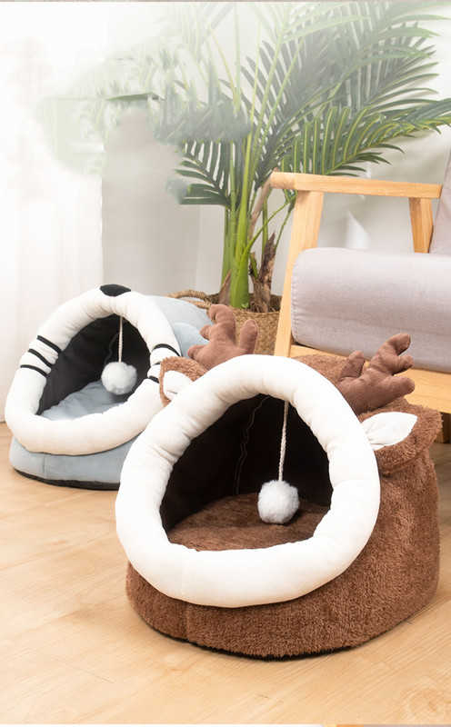 ペットハウス 半密閉型 ペットベッド ドッグハウス 室内 小型犬 小屋 クッション ソファ 寝床 可愛い ドッグハウス 冬用 保温 防寒