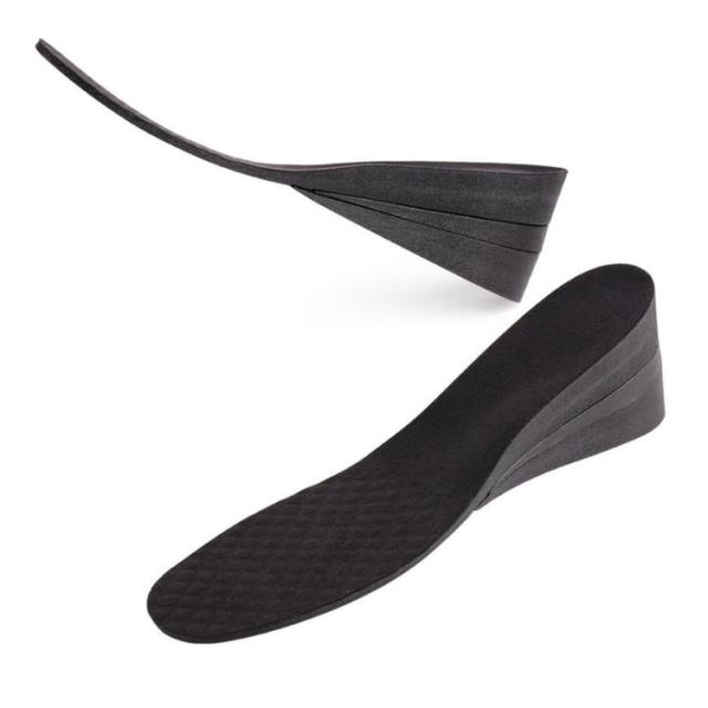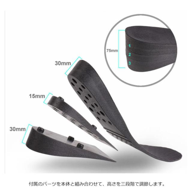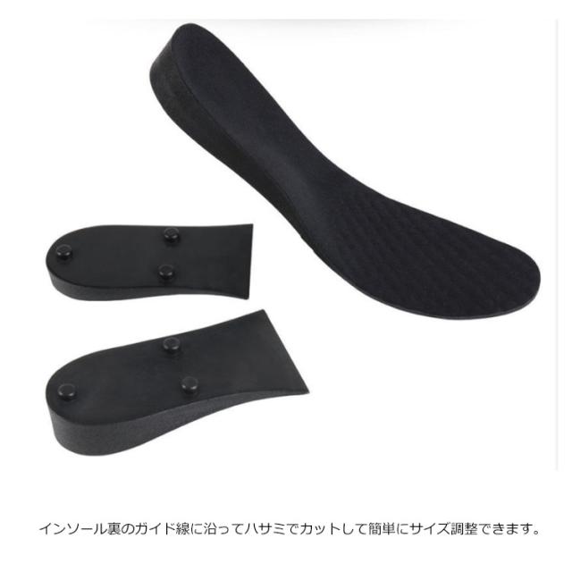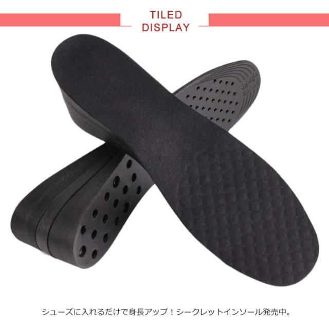| シューズに入れるだけで身長アップ!シークレットインソール発売中。 付属のパーツを本体と組み合わせて、高さを三段階で調節します。 インソール裏のガイド線に沿ってハサミでカットして簡単にサイズ調整できます。 包まれている感じとフワフワした踏み心地で足も楽そうです。 クッション性がある素材が衝撃を吸収し、長時間の使用でも体への負担なく快適に歩いていただけます。 | |