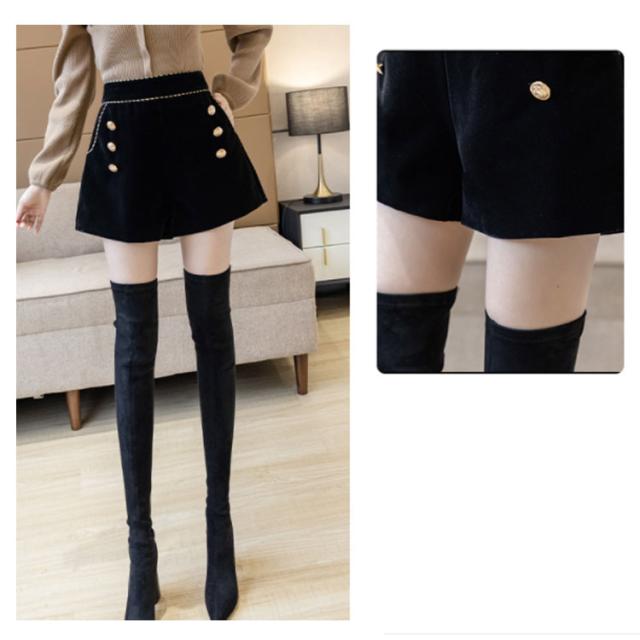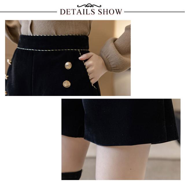 | 人気のベロア系 ショートパンツ? ・秋冬の季節のタイツ、レギンスなどに合わせて、ピッタリです. ・ワイドな裾幅、スカートみたいに広がるAラインシルエットはヒップラインも美しく演出してくれます。 普段使いはもちろんパーティーやちょっとした集まりにも着こなすことが出来ます。 | |
