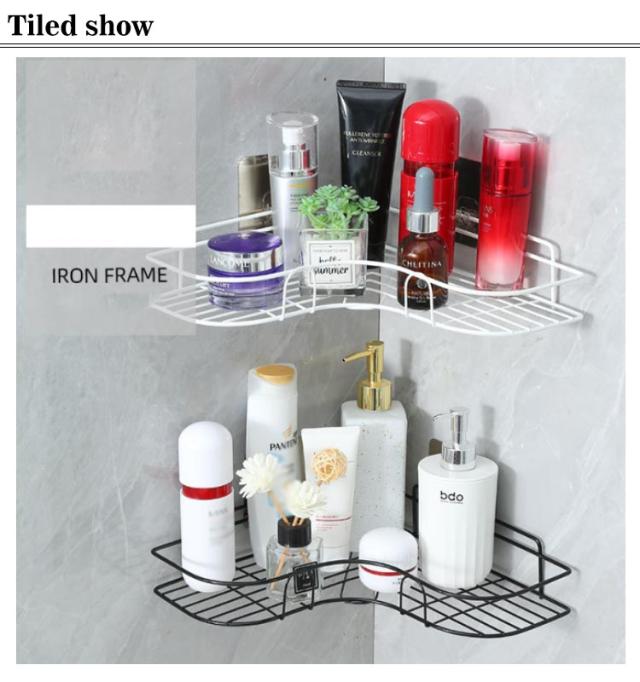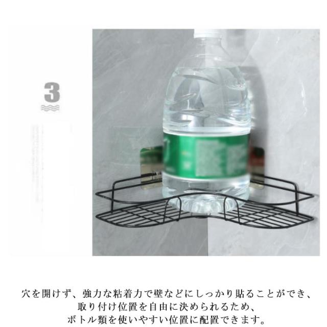 コーナーラック キッチン シャワーラック 粘着シート付き お風呂 洗面所 三角 マルチラック バスルーム 水切りラック 省スペース 壁面収納 隙間収納 バス用品 スチール シンプル ブラック ホワイト 【同色2点セット】お風呂 【同色2点セット】お風呂 キッチン用品 整理棚
