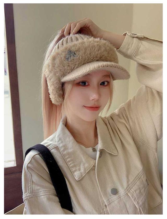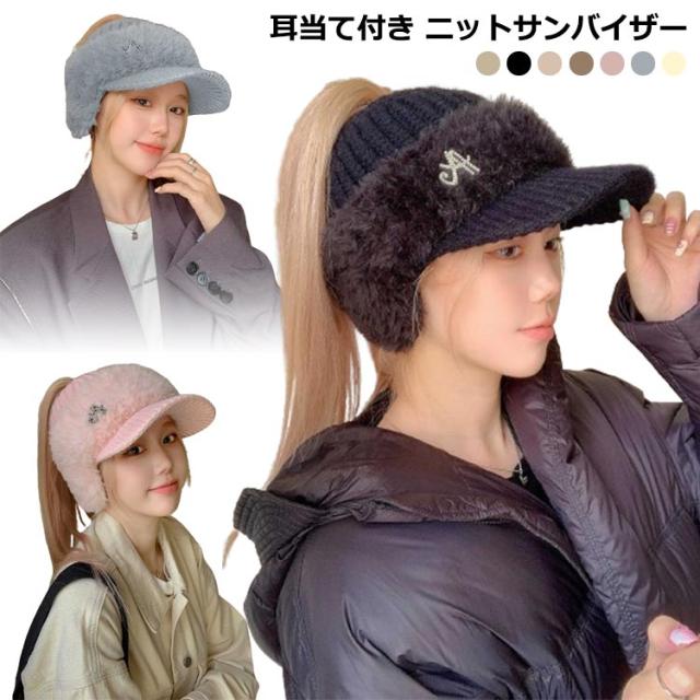リブ編み レディース ニットキャップ 耳当て つば付きニット帽 つば付きニット帽 冬用 ニットキャスケット 暖かい 帽子 あったか ゴルフ アウトドア 冬キャンプ 防寒 ファッション 秋 冬 秋冬