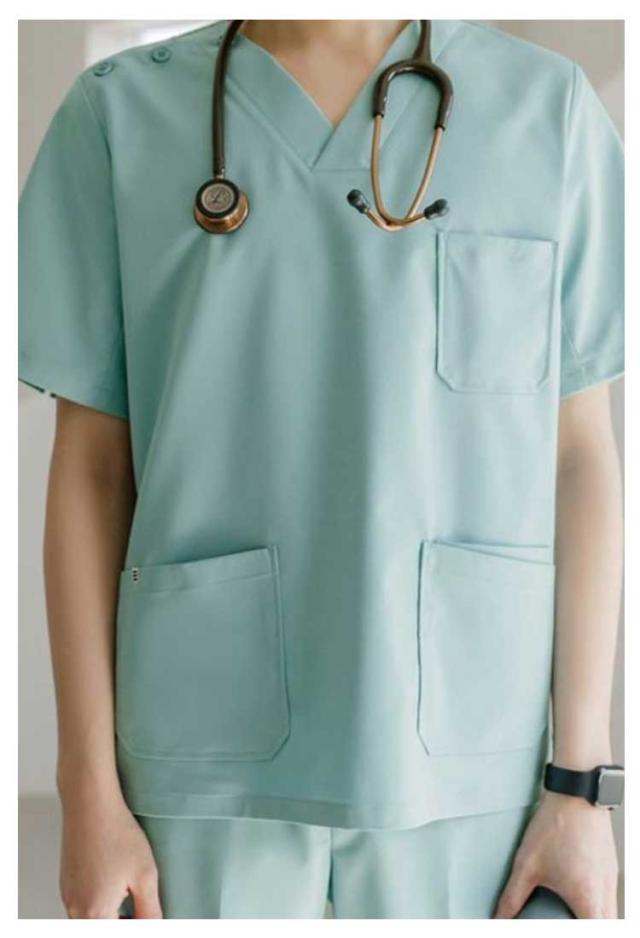 | S〜3XLの幅広いサイズ展開で、男女兼用の医療スクラブです。 素材は軽くて、柔らかい素材なのでどんな動きでも快適♪ いつも使うペンや名札などに便利な左胸ポケット♪ 前傾しても胸元の開きが気になりにくいVネック仕様♪ 肩開きには着脱しやすいボタンを採用します。 両サイドにポケットが付き、小物が多いナースの味方! 医療現場、介護現場、整体や動物病院など様々な場面でご着用頂けます。 | |