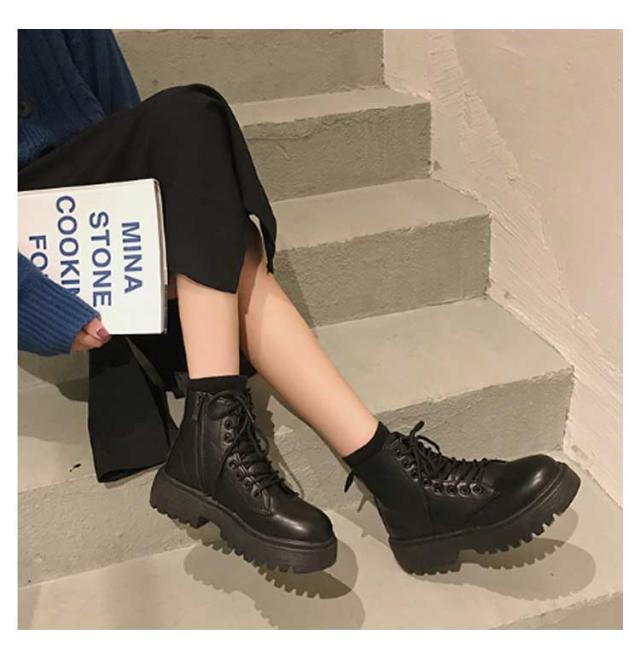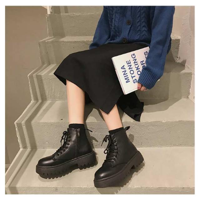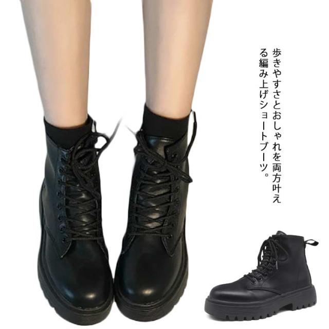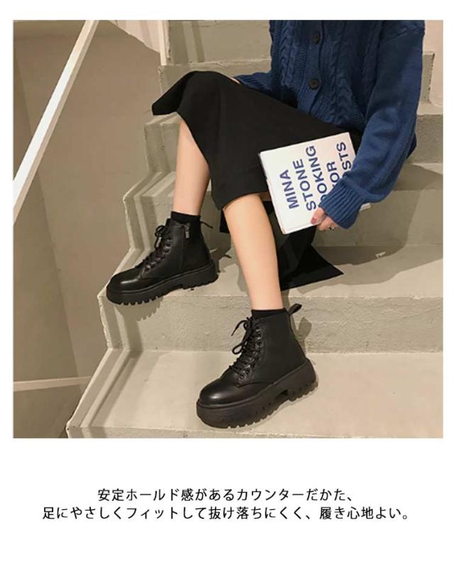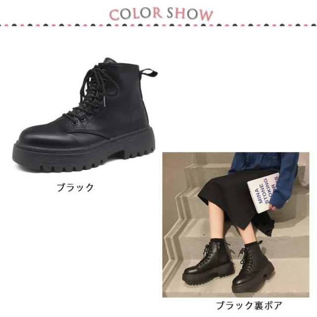 厚底ブーツ ショートブーツ 編み上げブーツ レディース ブーツ 厚底 裏ボア ローヒール サイドジップ ブーティ レースアップシューズ ワークブーツ 歩きやすい 安定感 春 秋 冬 おしゃれ かっこいい