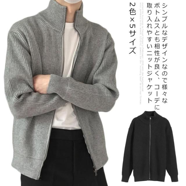 ニット メンズ セーター 秋冬 ニットジャケット 春秋 ブルゾン ニット ニットカーディガン ダブルファスナー リブ編み セーター スタンドカラー スタンドニット きれいめ キレカジ ジップ