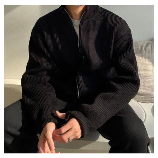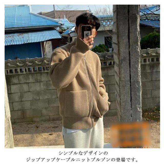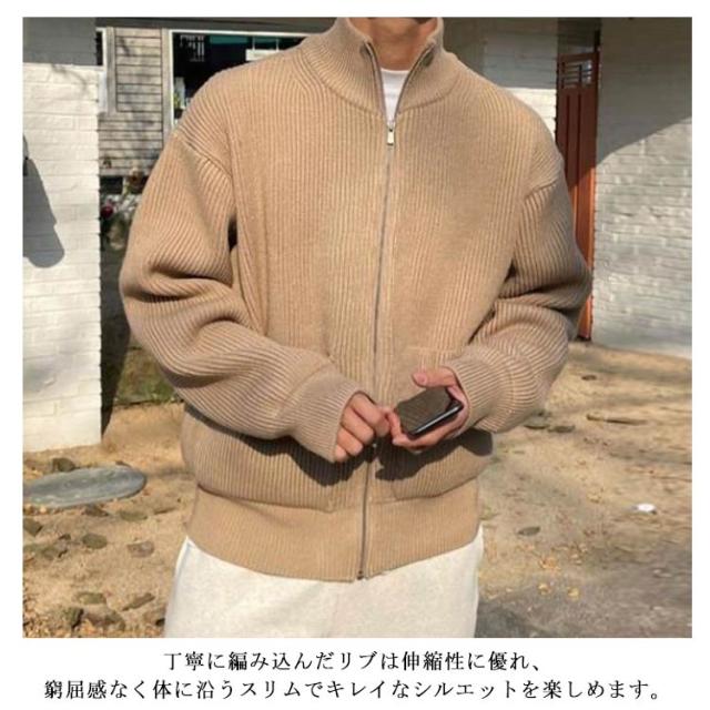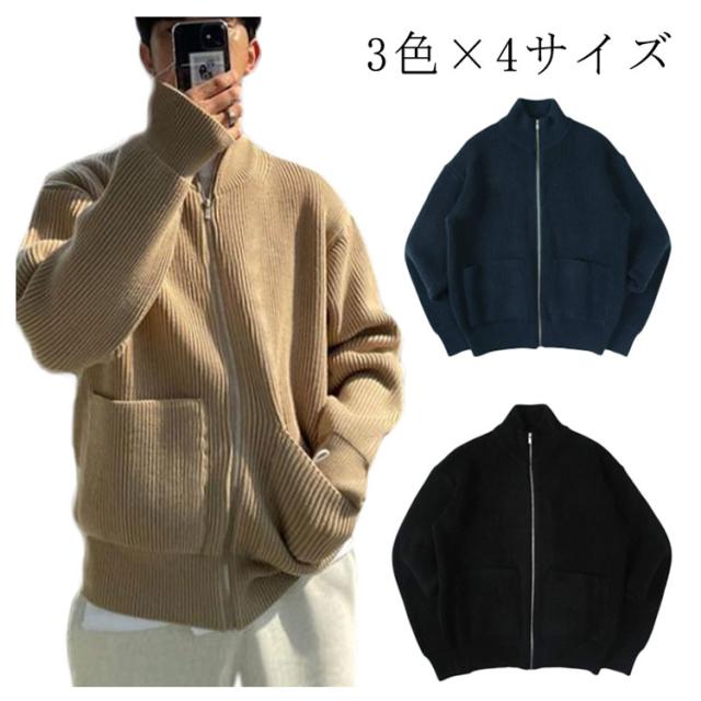 ジップアップニット メンズ ニット ブルゾン 長袖 セーター カーディガン スタンドカラー ジップアップ ゆったり セーター アウター ハイネック ジャケット スタンドカラー スタンドニット 春 秋 冬 服