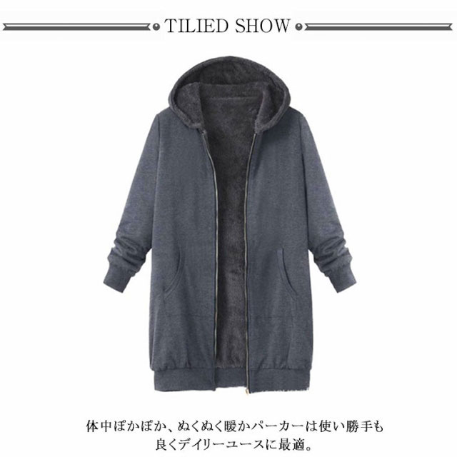 あったか ジップアップ フード付き 裏起毛 レディース 厚手 パーカー ロング 長袖 秋 裏ボア フーディ ミドル丈 チュニック アウター 上着 羽織り 大きいサイズ 無地 防寒 春 カーディガン