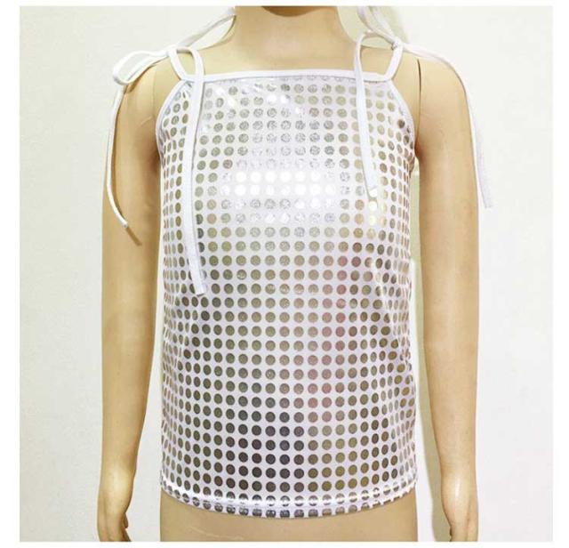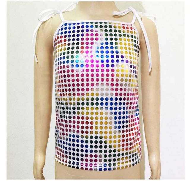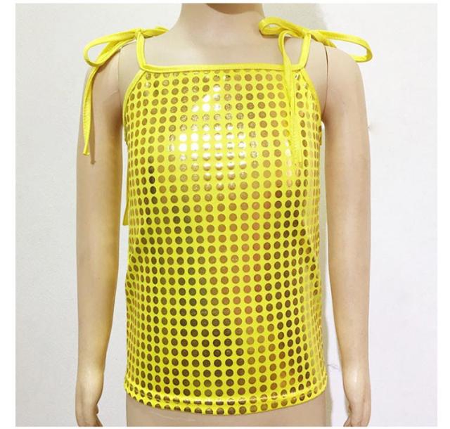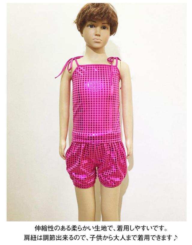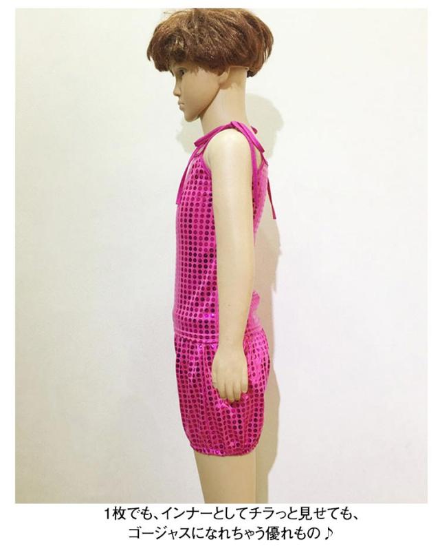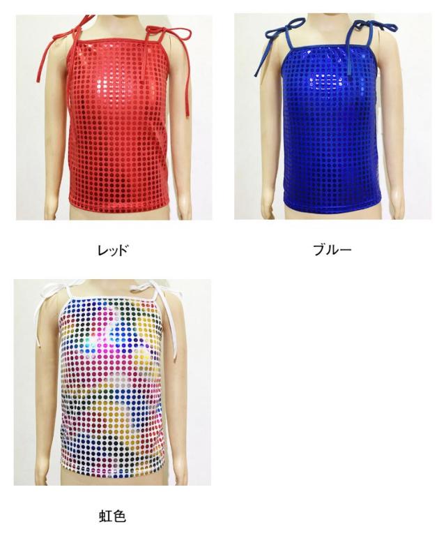 | 表面はスパンコールがびっしりと縫い付けられていて、密集タイプの伸縮性のあるスパンコール生地。 伸縮性のある柔らかい生地で、着用しやすいです。 肩紐は調節出来るので、子供から大人まで着用できます♪ 1枚でも、インナーとしてチラっと見せても、ゴージャスになれちゃう優れもの♪ ヒップホップや社交ダンス、サンバやベリーダンスから、ダンサーやシンガーさんのステージ衣装として♪ ダンスチームで統一感を出して揃えたり、お友達と色違いで合わせると、お目立ち度も更にUP☆ | |
