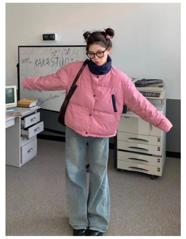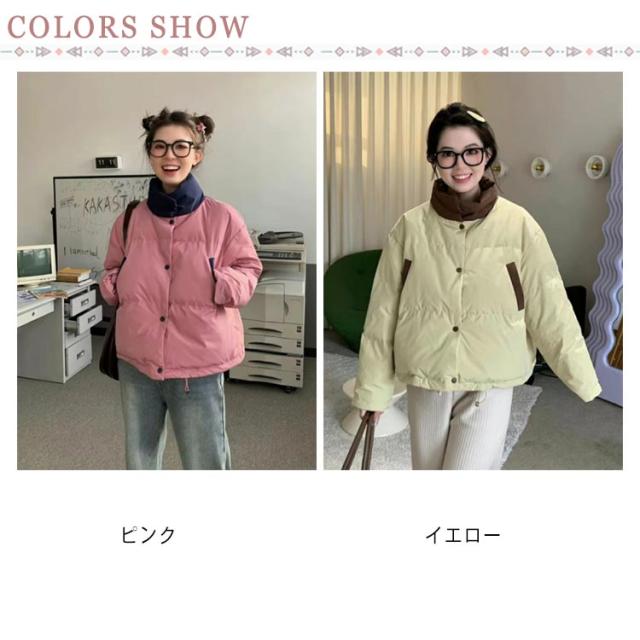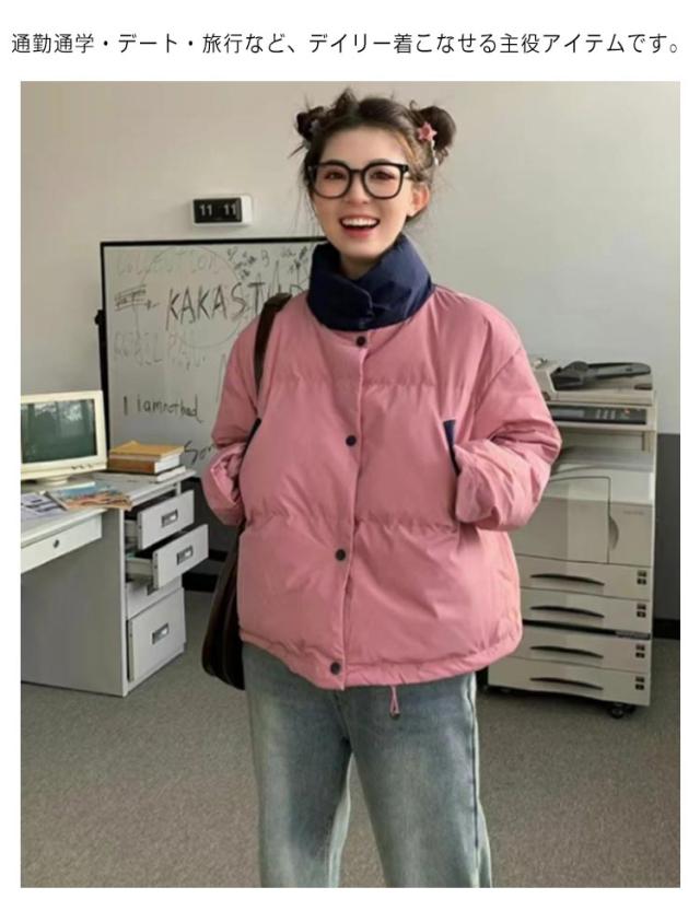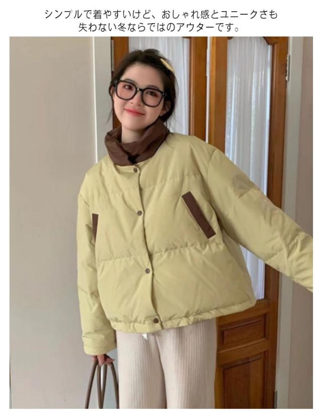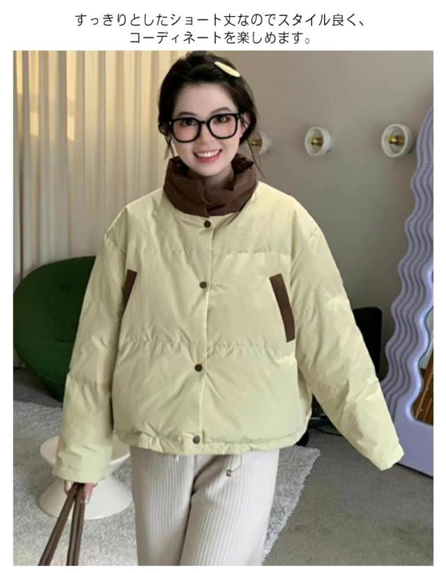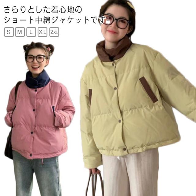 綿入れ 中綿ジャケット ショート丈 ダウンジャケット フェイクダウン レディース スタンドカラー 可愛い 防寒 中綿コート 暖かい 体型カバー 軽量 ゆったり きれいめ アウター シンプル おしゃれ 学生 通学 通勤 カジュアル