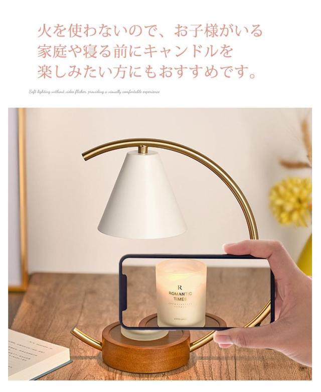 | 【火を使わずにキャンドルを楽しむ】電球の熱を利用したキャンドルウォーマー。 スイッチを入れるだけでアロマの香りが漂います。 また、温かい光を放つのでベッドサイドに置いておしゃれなランプとしてもお楽しみいただけます。 火を使わないので、お子様がいる家庭や寝る前にキャンドルを楽しみたい方にもおすすめです。 【無段階調光も可能】ボタンでライトの明るさを調整できます。 | |
