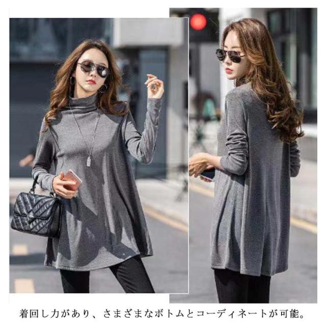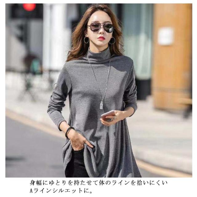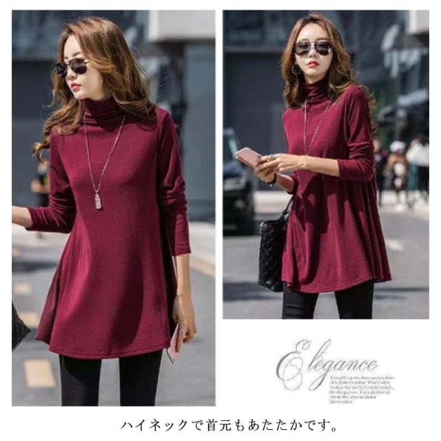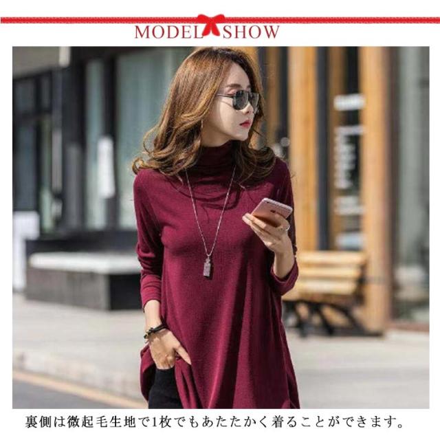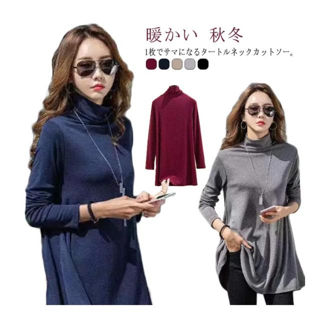 チュニック Aライン トップス カットソー インナー レディース カットソー プルオーバー タートルネック カジュアル あったか 長袖 チュニック Tシャツ 秋 冬 着痩せ トレーナー 厚手 体型カバー 暖かい 重ね着 無地 かわいい 通勤