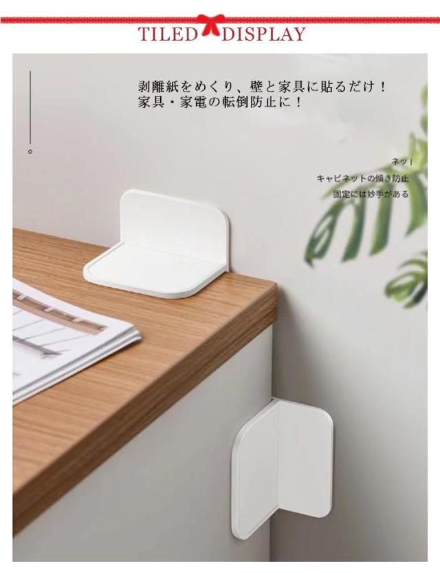 | 【家具転倒防止 4個セット】 剥離紙をめくり、壁と家具に貼るだけ!家具・家電の転倒防止に! ネジやクギも使わず貼るだけの穴あけ不要なので、家具や壁面を傷つけません。 家具や冷蔵庫、タンスなど大型の家具にもご使用いただけます。 オフィスや賃貸マンションにもオススメです。 | |