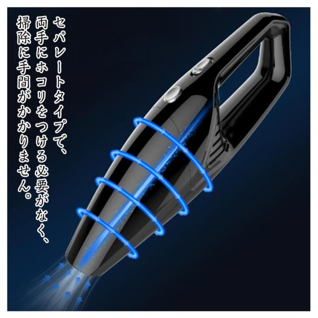| 車内でも自宅でも大活躍するクリーナー。 コードレスタイプなので距離制約なし、あらゆる場所の清掃がラクラク。 大容量のリチウム電池で連続 20〜30 分使用できる。 コンパクト軽量ミニボディーで持ち運びしやすい。 車のUSBポート、家庭用コンセント、充電器、ノートパソコン、デスクトップなどすべて充電可能です。 強力な真空陰圧区は、髪の毛やホコリなどを瞬時に吸い込み、絡まりません。 セパレートタイプで、両手にホコリをつける必要がなく、掃除に手間がかかりません。 ダニなどの汚染物質のほとんどは濾過できます。 取り外し可能で水洗いもでき消耗性がなく環境にも優しいです。 | |